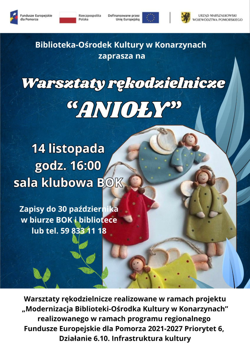 Warsztaty rękodzielnicze realizowane w w ramach projektu "Modernizacja Biblioteki-Ośrodka Kultury w Konarzynach" realizowanego w ramach programu regionalnego Fundusze Europejskie dla Pomorza 2021-2027 Priorytet 6, Działanie 6.10. Infrastruktura kultury
