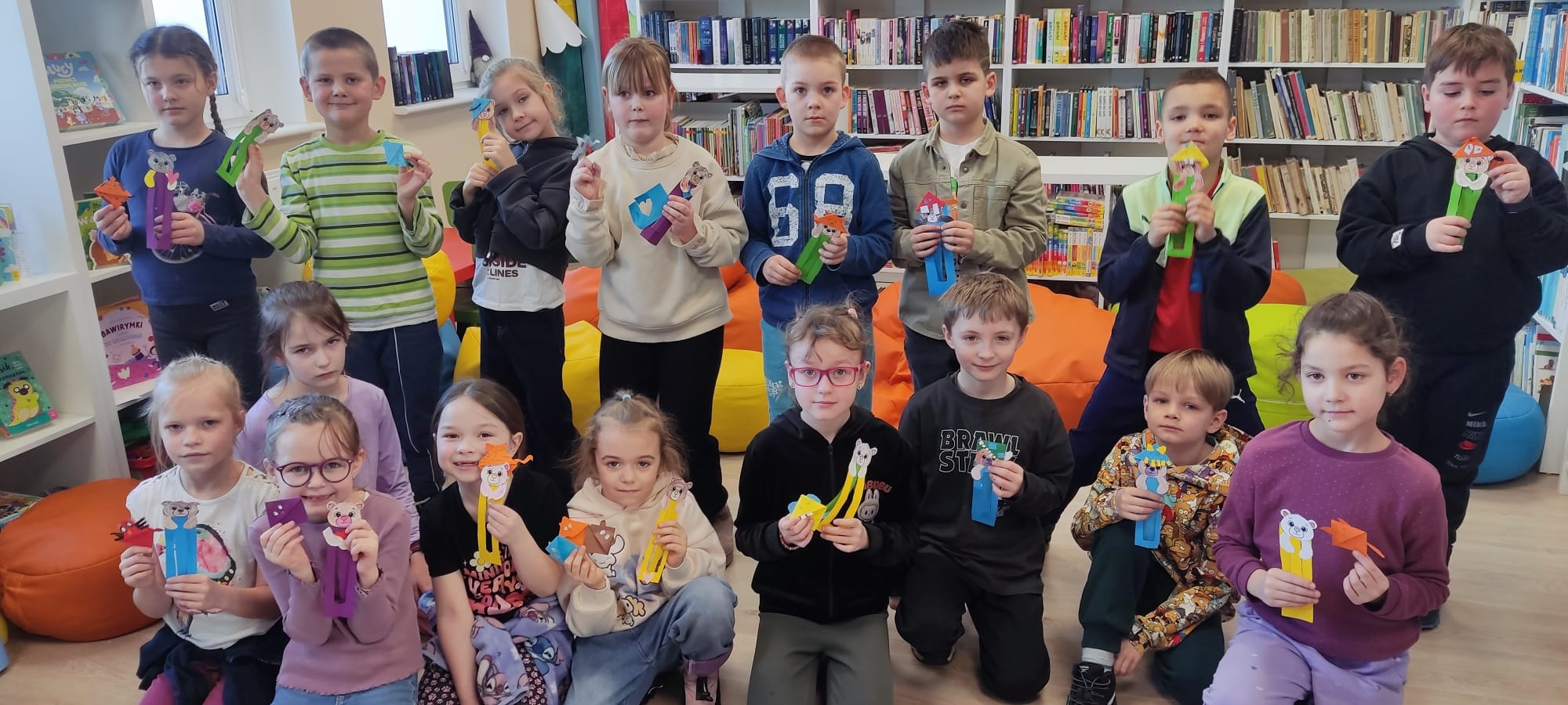 Na zakończenie dzieci zamieniły się w małych artystów i stworzyły wyjątkowe zakładki do książek. Nie brakowało kolorów, pomysłów i uśmiechów!