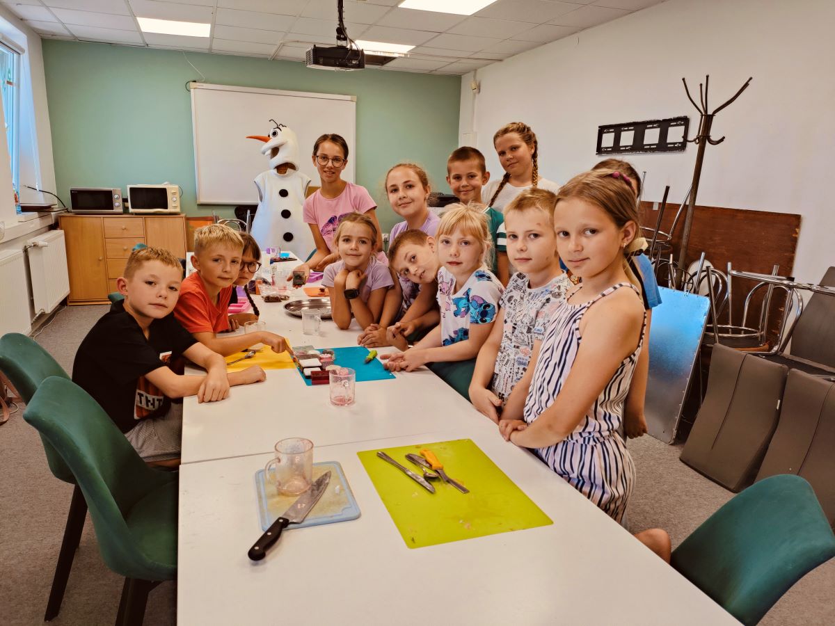 Warsztaty z tworzenia mydełek i wakacyjne gotowanie. Podczas letnich zajęć nasi uczestnicy mogli połączyć kreatywność artystyczną i kulinarną przygodę. Pierwszy dzień poświęcony był warsztatom tworzenia mydełek glicerynowych. Dzieci eksperymentowały z kolorami, zapachami i kształtami, tworząc własne, unikatowe produkty. Była to nie tylko świetna zabawa, ale i praktyczna nauka. Następnie odbyły się zajęcia kulinarne pod hasłem „Wakacyjne gotowanie”. Tym razem dzieci poznały smak kuchni włoskiej, przygotowując i degustując klasyczne spaghetti. Wspólne gotowanie przyniosło mnóstwo radości, a samodzielnie przyrządzone danie smakowało wyjątkowo. Były to dzni pełne nowych doświadczeń, twórczej radości i pysznych smaków – doskonałe połączenie zabawy i nauki.