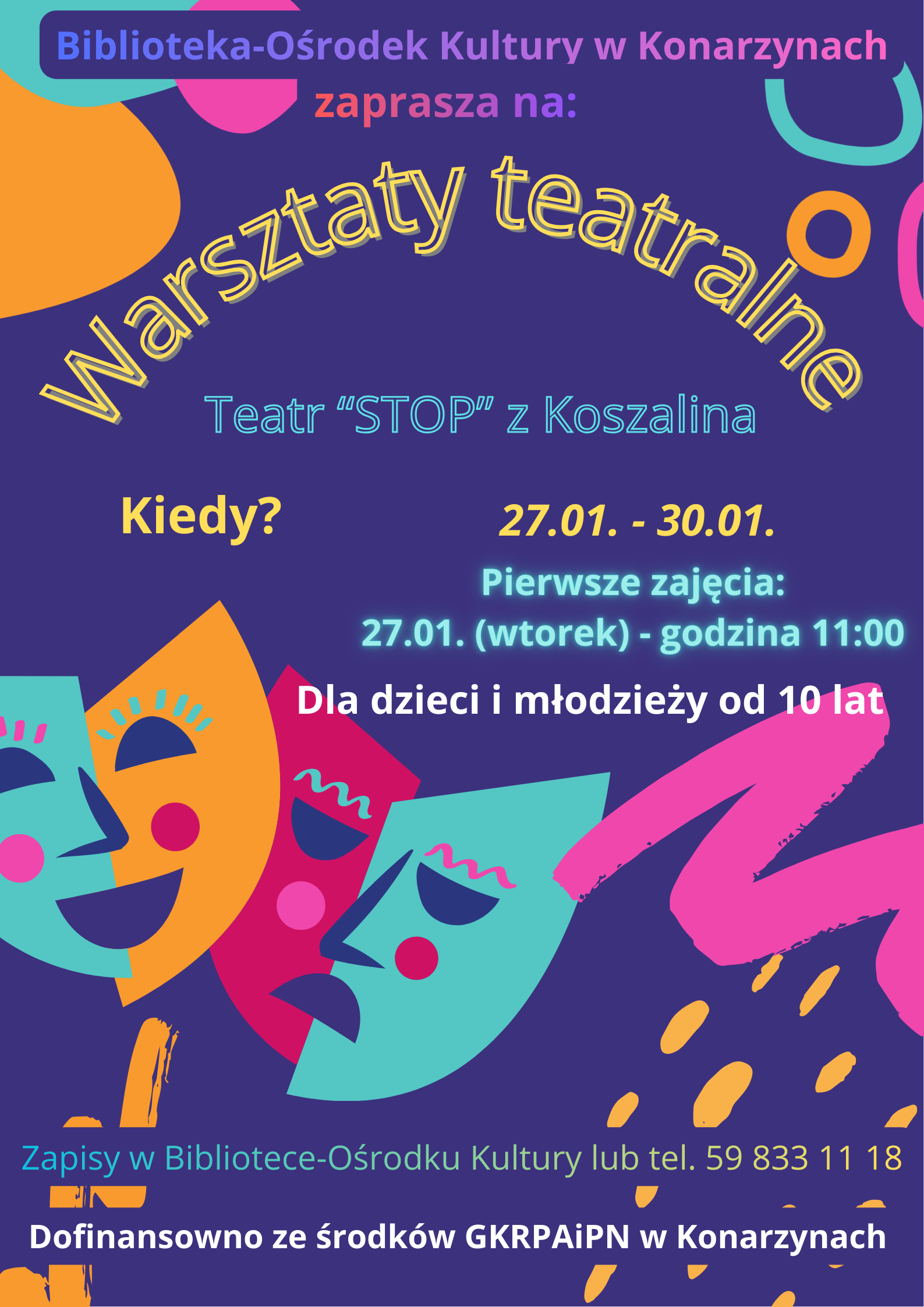 Serdecznie zapraszamy młodzież i dzieci od 10 lat do zapisów na warsztaty teatralne!